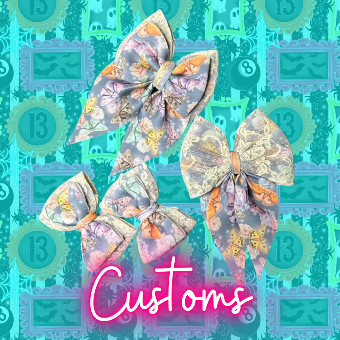 We LOVE customs here at DRBC. From birthday bows to special events and everything in between! We love using special fabric, files, and embellishments to really bring your idea to life!